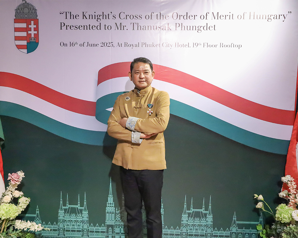 กงสุลกิตติมศักดิ์ฮังการี ณ จังหวัดภูเก็ต รับเครื่องราชอิสริยาภรณ์สูงสุดจากฮังการี ยกย่องบทบาทส่งเสริมสัมพันธ์ไทย-ฮังการี พร้อมผลักดันกีฬาเทคบอลสู่เวทีโลก
